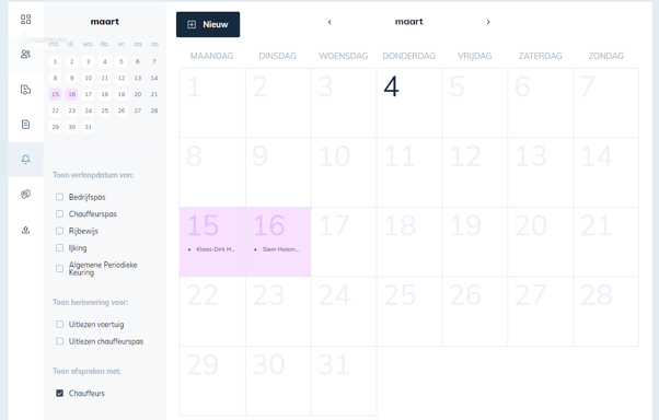 U kunt ook de agenda bekijken van eerdere of toekomstige maanden door te klikken op de pijltjes links en rechts naast de maand.