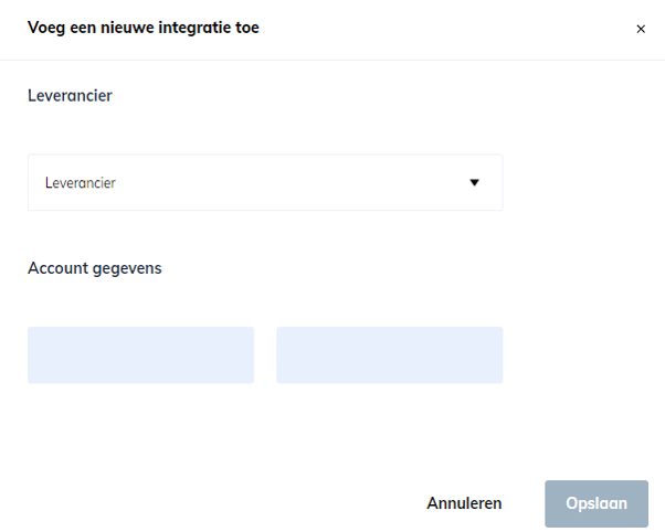 Onder dit kopje kunt u een nieuwe integratie toevoegen. Dit maakt het mogelijk om vanuit een ander systeem data door te zetten in onze software. Integratie tab niet zichtbaar? Neem contact met ons op.