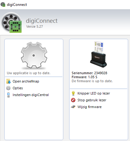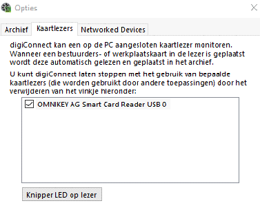 Wanneer de kaartlezer is aangesloten, zou deze zichtbaar moeten zijn in DigiConnect.