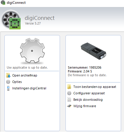 Wanneer de DigiVu wordt herkend door Digiconnect, zou deze zichtbaar moeten zijn in uw scherm, zoals hieronder:
