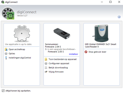 Als DigiConnect is opgestart verschijnt de DigiVU en/of kaartlezer in beeld.